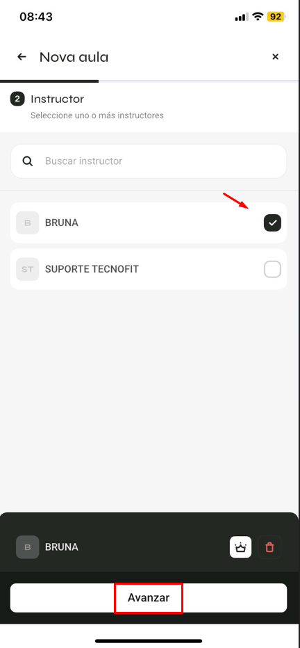 Elige el instructor responsable y haz clic en avanzar: