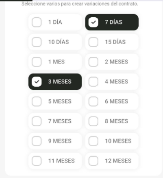Defina la duración del plan, aquí puede seleccionar varios períodos de duración del contrato: