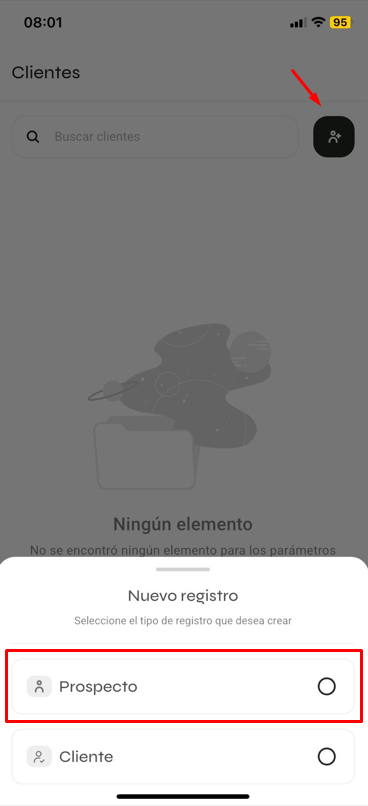 Elige la opción 'Prospecto'