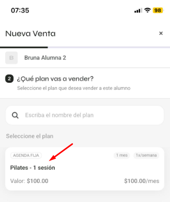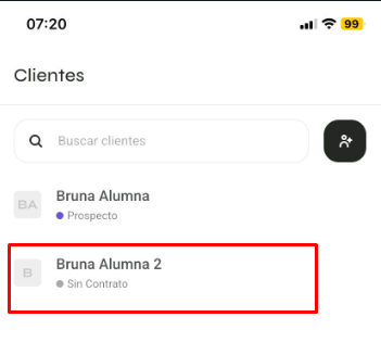 En el pie de página de la aplicación, toca en Cliente y selecciona al alumno que realizará la compra
