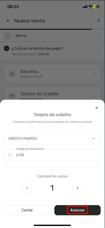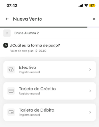 Elige la forma de pago (tarjeta, efectivo, etc.)