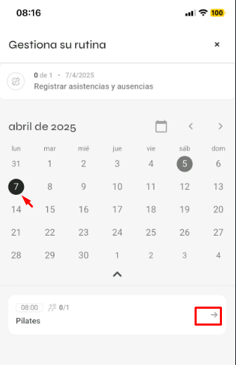 Haz clic en el ícono 'Registra asistencias y ausencias' en gestiona su rutina