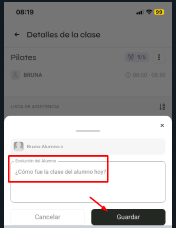 3️⃣ Registra la asistencia y la evolución del alumno: