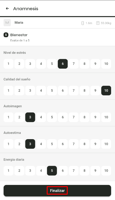 Evalúa en una escala del 1 al 10 cómo se siente el alumno en los siguientes aspectos: