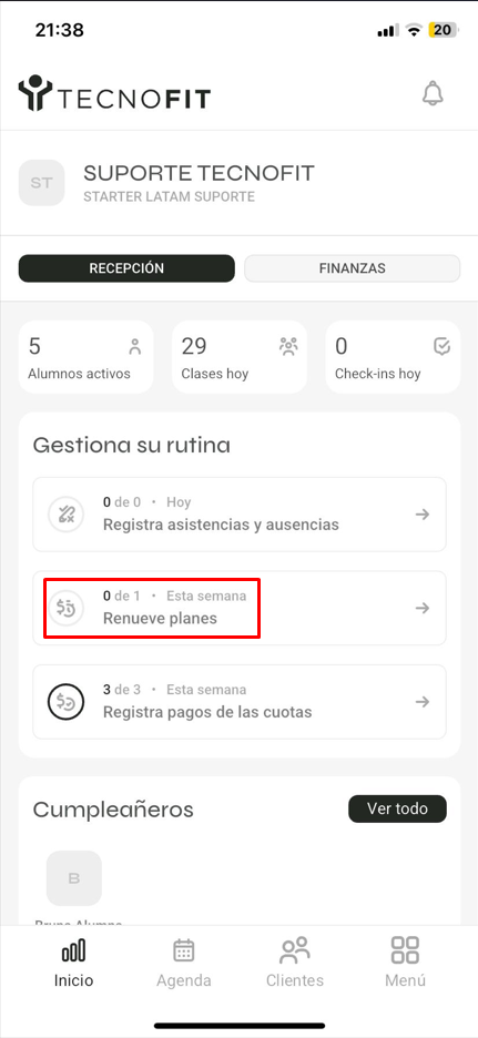 En este artículo, aprenderás a renovar un contrato de forma sencilla desde el Dashboard en Plan Starter para Estudio, utilizando la Aplicación Tecnofit Gestión.