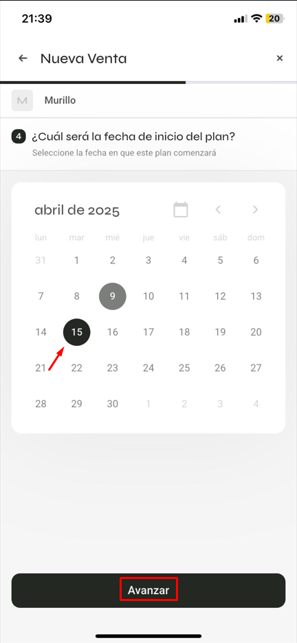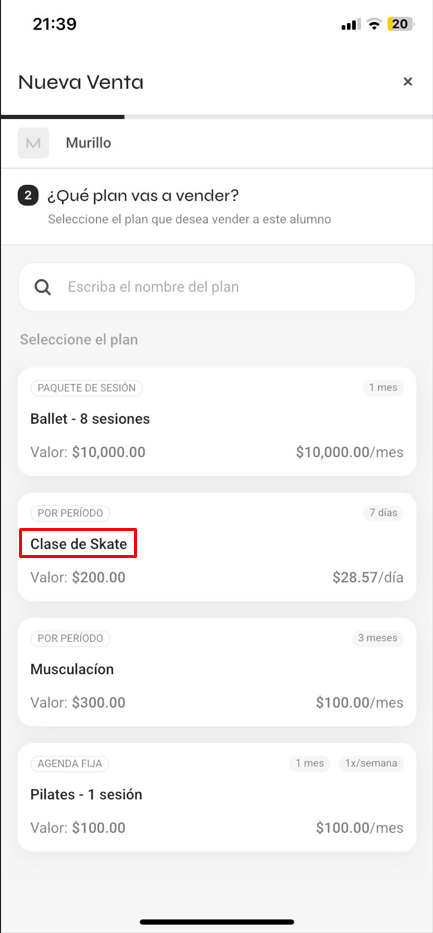 4️⃣ Selecciona el plan para la venta: