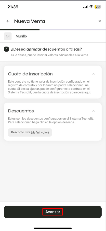 Selecciona la tasa de matrícula y el descuento
