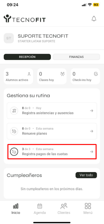 En este artículo, aprenderás cómo registrar pagos desde el Dashboard en el Plan Starter para Estudio, utilizando la Aplicación Tecnofit Gestión.