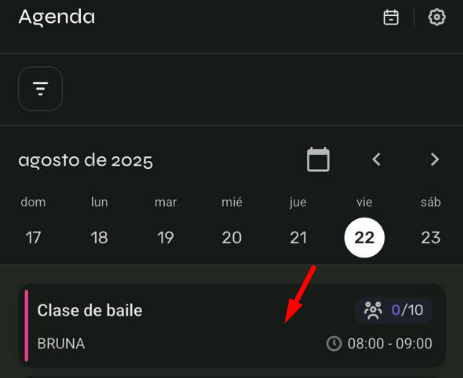 2️⃣ Selecciona la clase que deseas cancelar