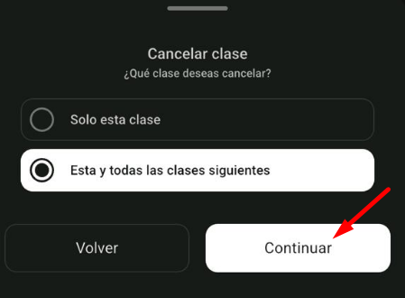 Solo esta clase: cancelará únicamente la clase del día.