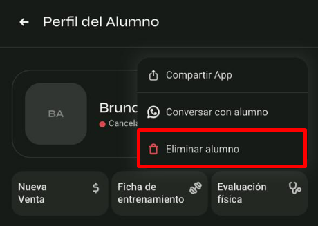 Elige la opción “Eliminar alumno” y confirma la acción.