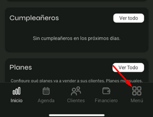 En la parte inferior de la aplicación, toca en Menú.