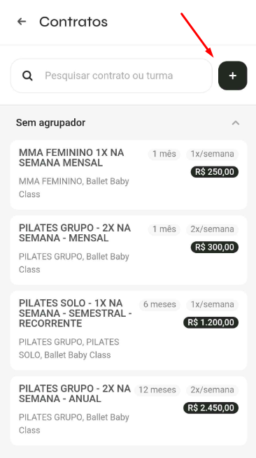 - Toque no ícone "+" para adicionar um novo contrato.