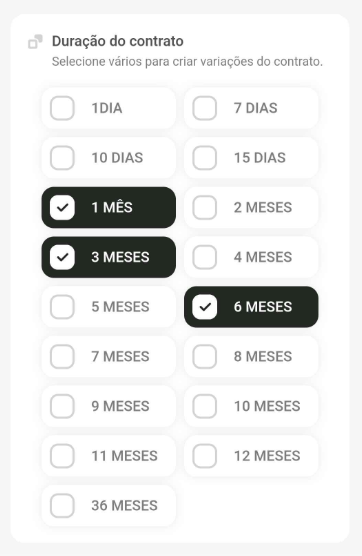 - Defina a duração do contrato (aqui você pode selecionar vários períodos de duração do contrato).