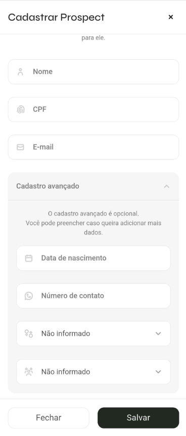 - Caso queira um cadastro completo, preencha o campo Cadastro avançado.