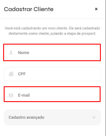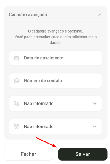 - Caso queira um cadastro mais completo, preencha o campo Cadastro avançado.