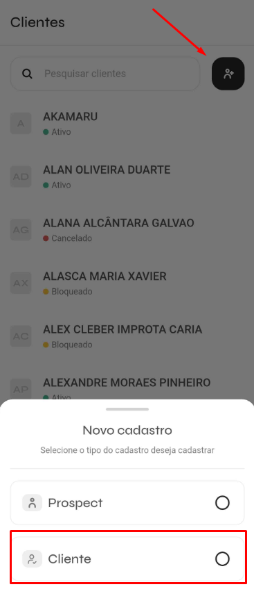- Localize e toque na opção Cliente.