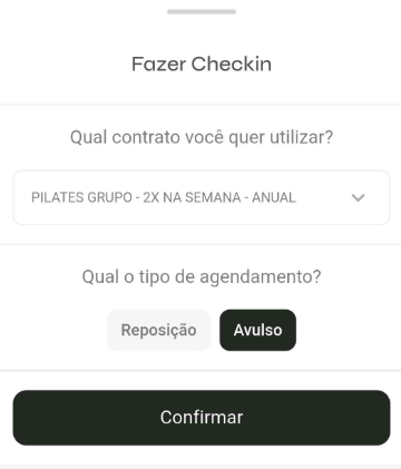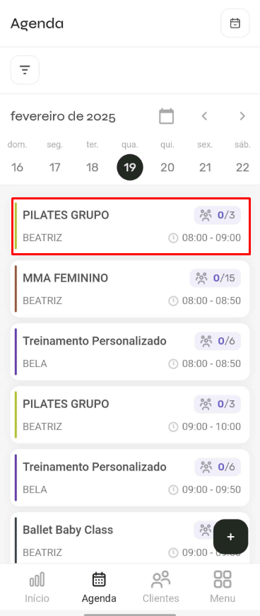 - No rodapé do aplicativo, toque em Agenda e selecione a aula em que deseja realizar o check-in.
