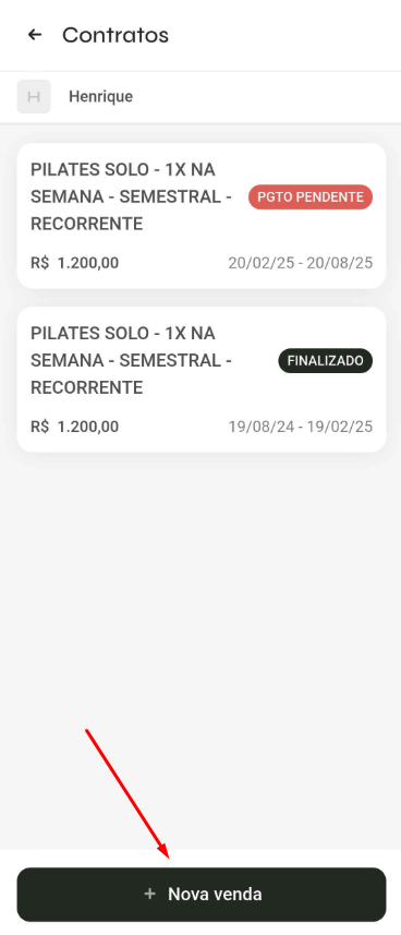 - Será possível realizar uma nova venda para o aluno que está com contrato vencido ou para vencer,