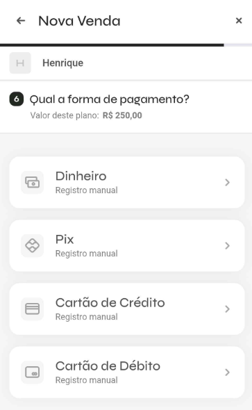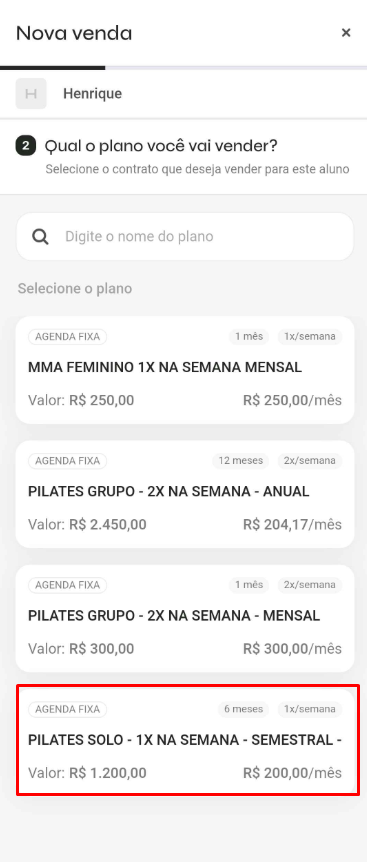 - Selecione o plano que deseja vender ao aluno,