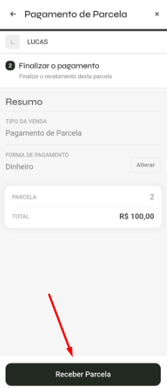 - É possível verificar todas as informações da baixa de pagamento e então finalizar.
