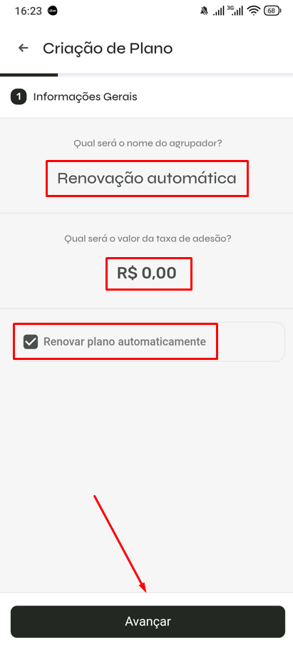 - Configure o valor do plano de acordo com parcelamento permitido.