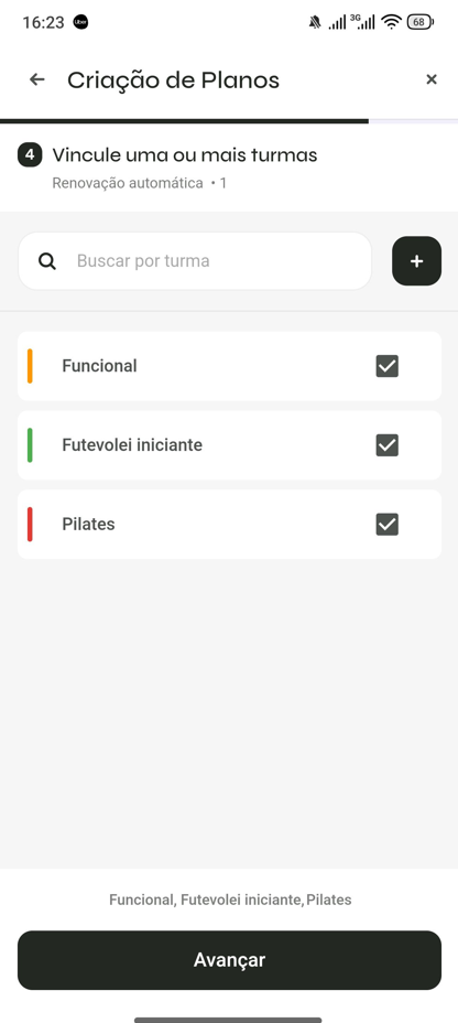 - Escolha as turmas que os alunos podem acessar ao adquirir esse contrato: