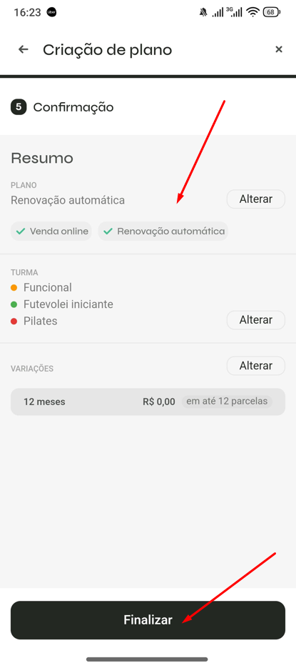- Selecione a opção Renovação automática (caso não marque essa opção na hora da venda não será possível atribuir a renovação automática).