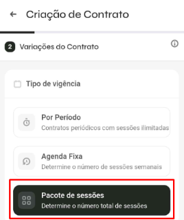 - Determine o número de sessões do contrato (aqui você pode selecionar várias sessões diferentes).