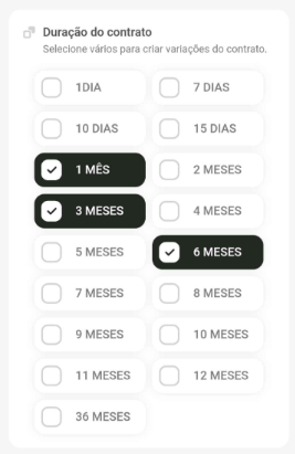 - Defina a duração do contrato (aqui você pode selecionar vários períodos de duração do contrato).
