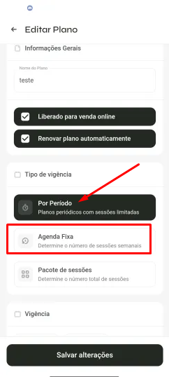 - Altere a configuração de Período para "Agenda fixa"