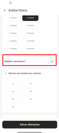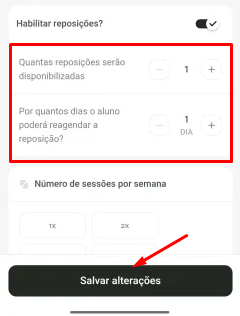 - Configure a quantidade de reposições disponíveis,