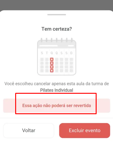 - Apenas esta aula: irá cancelar somente a aula do dia.
