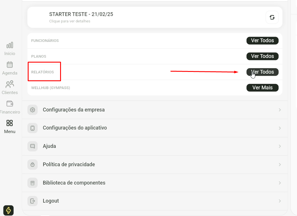 - Localizei Relatórios e clique em "Ver Todos".