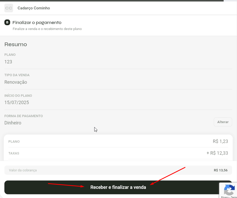 - Clique em "Receber e finalizar a venda"