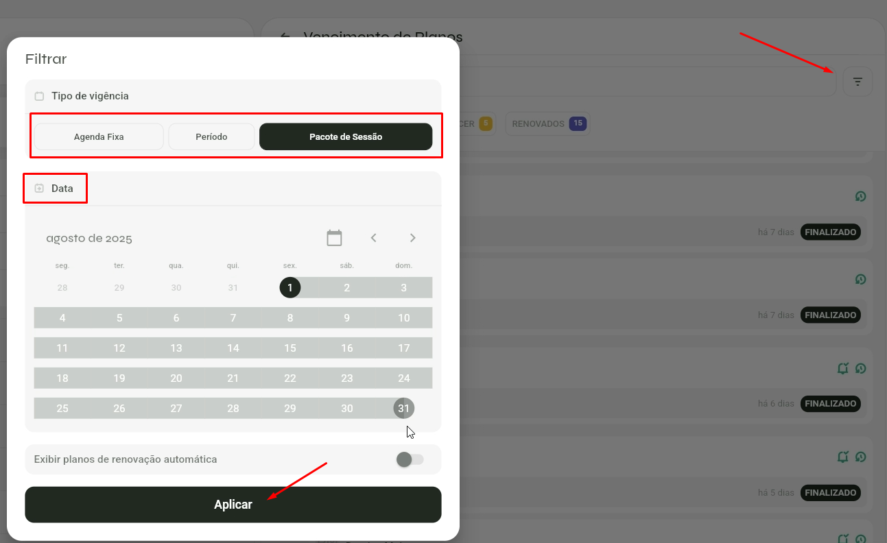- E filtrar também por Data e planos de renovação automática.