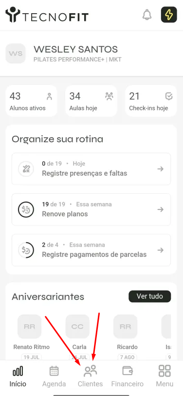 - No rodapé do aplicativo, toque em Clientes.