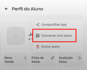 - Clique nos 3 pontinho e depois em "Conversar com aluno"