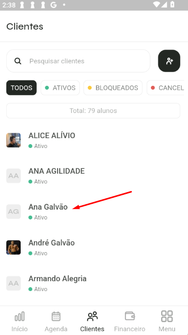 - No rodapé do aplicativo, toque no Clientes.