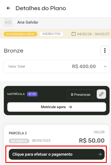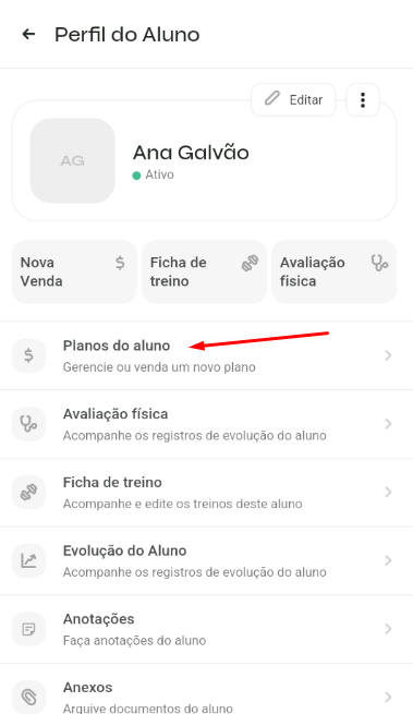 - Clique na opção "Planos do aluno"