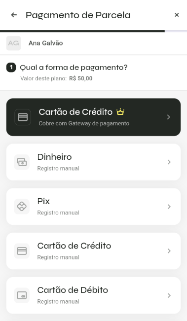 - Escolha a forma de pagamento;