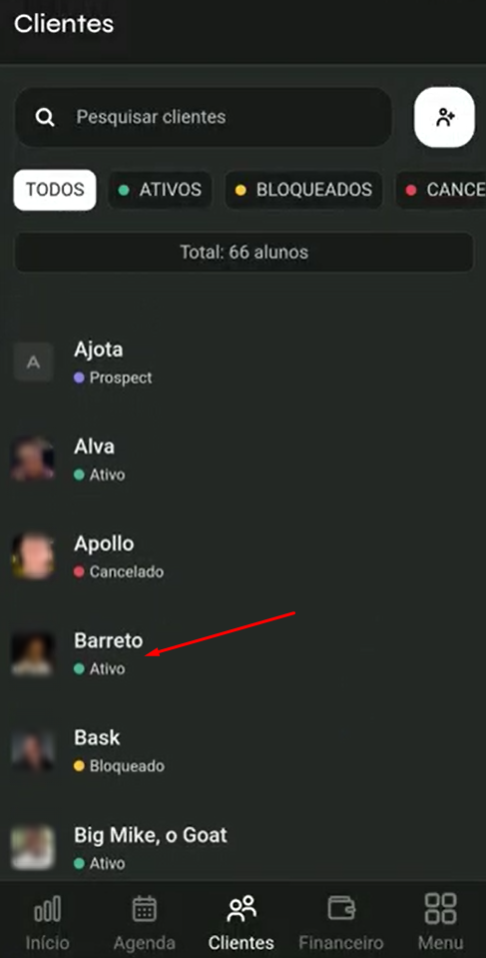 - No rodapé do aplicativo, toque em Clientes.