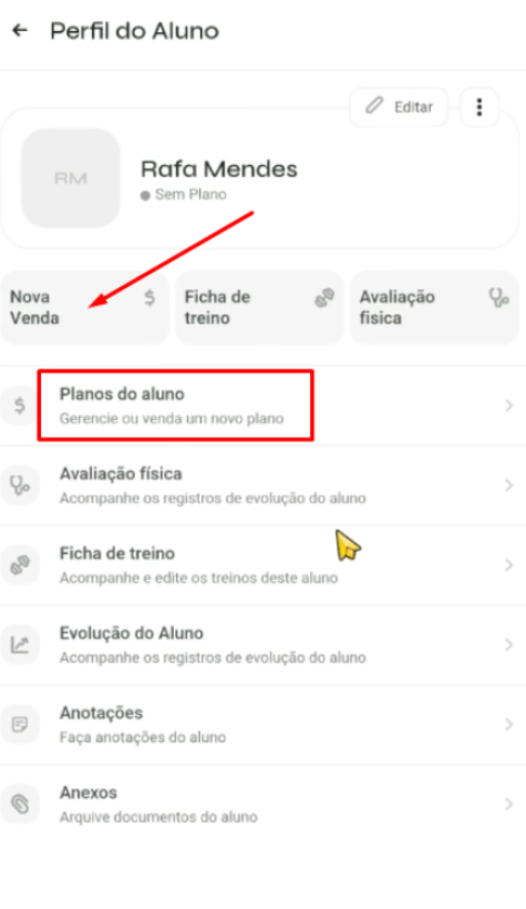 Clique em Planos do aluno.