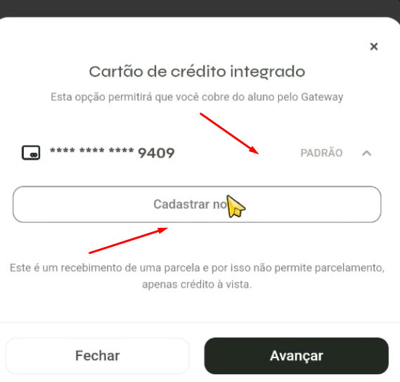 Escolha a opção Cadastrar novo cartão.
