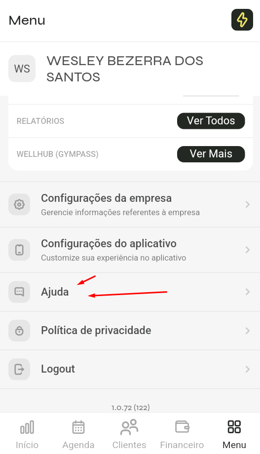 2️⃣ Vá até “Ajuda”