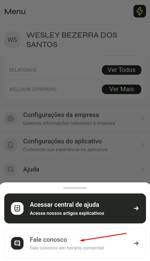 3️⃣ Toque em “Fale conosco”