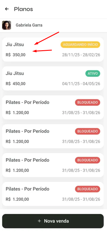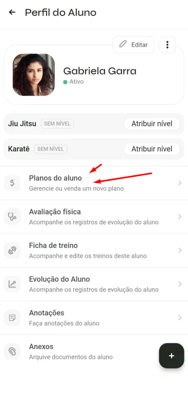 Dentro do perfil do aluno, toque em Planos do aluno.