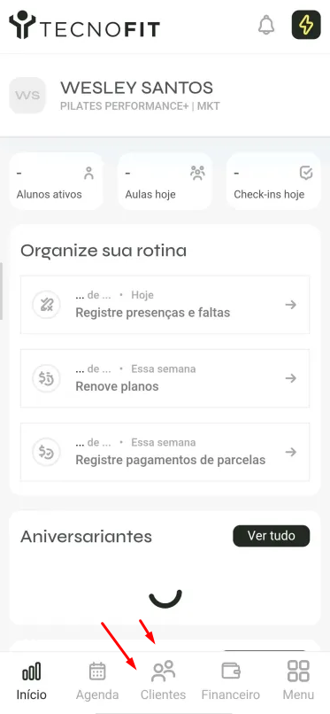 Na tela inicial, vá até a aba Clientes.