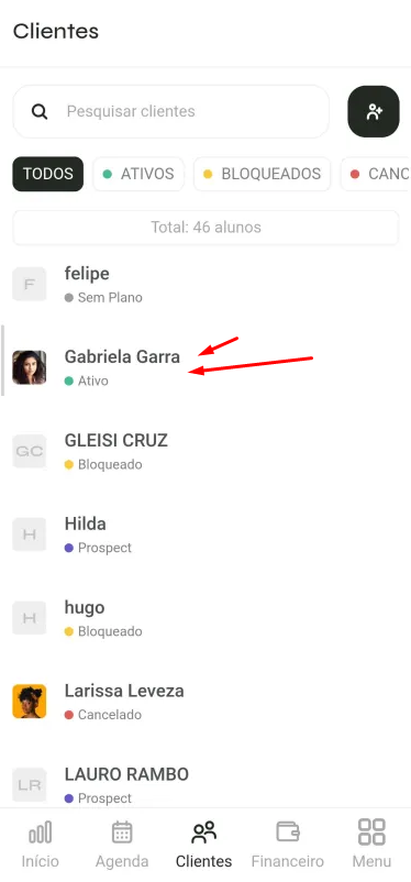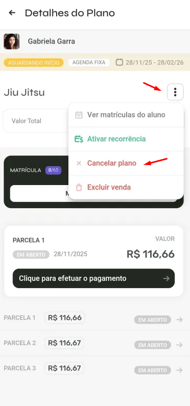 3️⃣ Abra os planos do aluno