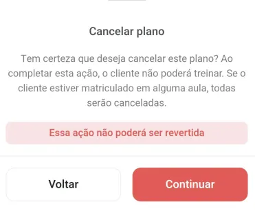 O cancelamento do contrato não pode ser desfeito. Caso o aluno volte a treinar, será necessário criar um novo contrato.